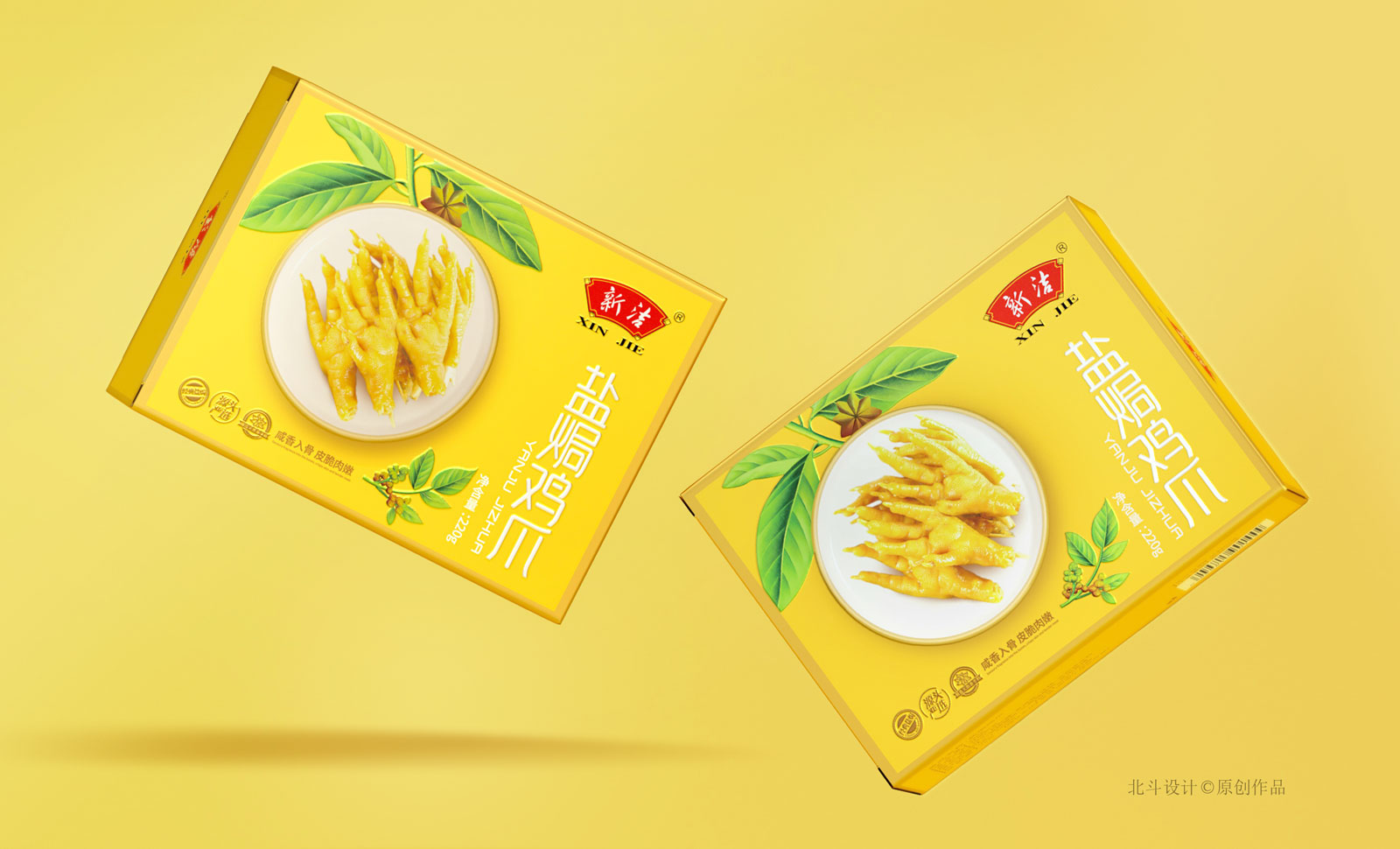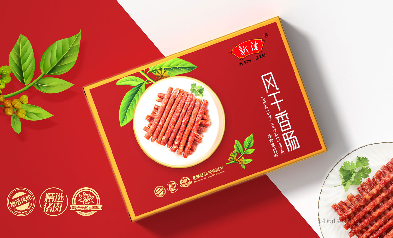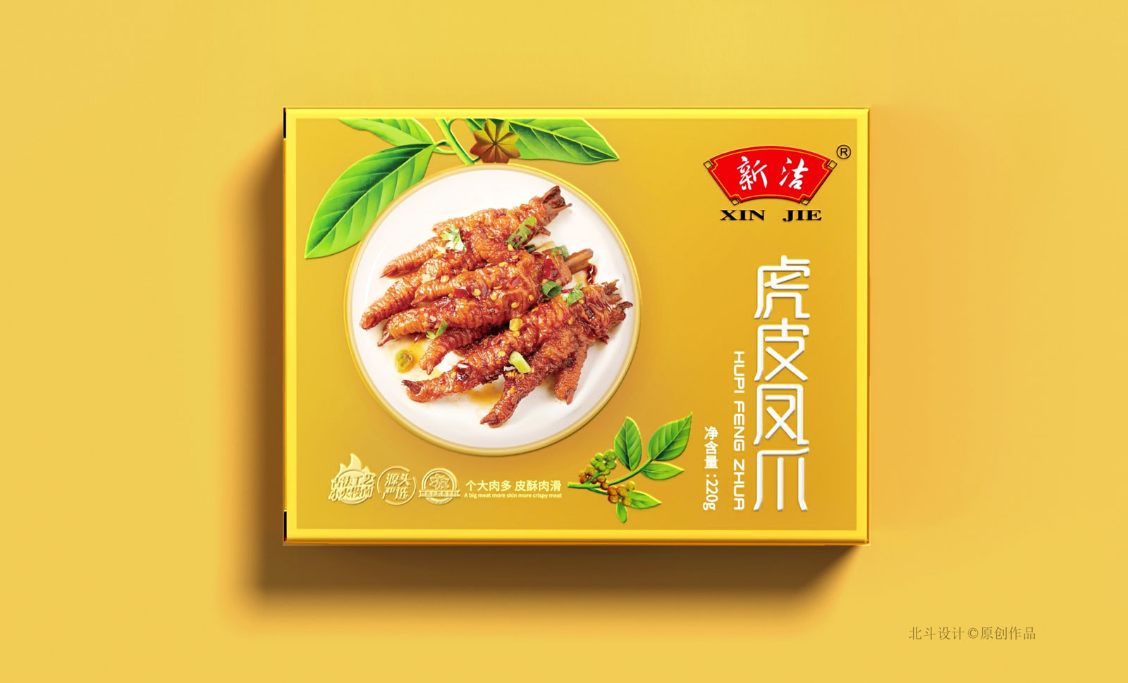 北斗設計于2018年開始與新正食品合作,期間完成了鹵鮮號品牌策劃設計,新潔燒雞系列產品包裝設計,這次合作的項目為升級舊有產品的包裝形象設計,總共五個單品,包含風干香腸,醬牛肉,豬肚,鳳爪。